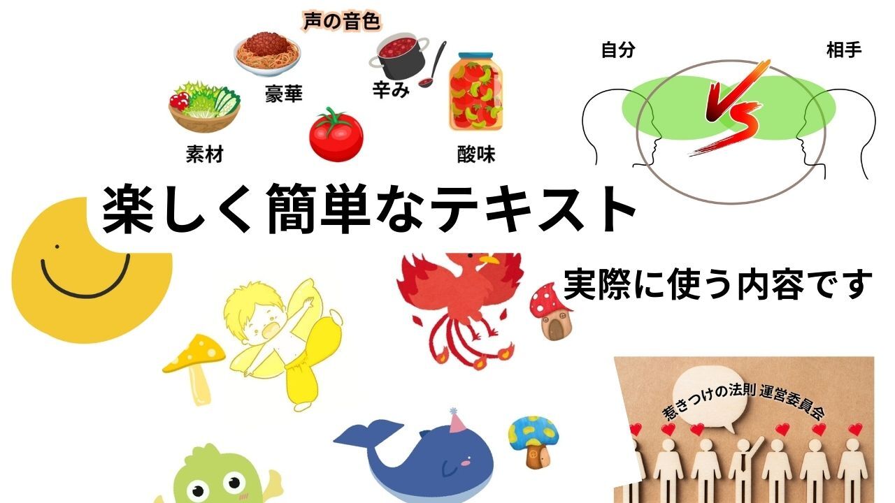 なんだか難しそう…と思った方、こんなテキストと実践で会話を楽しみながら行います。